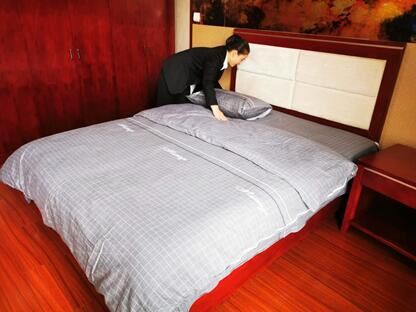 十點左右,省院院長一行人到達,工作人員展示微笑問好,隨后陪同院領導及省院院長到院區和各車間以及樓層巡視。同時接待室接待和包廂接待也再次檢查確認是否準備妥當。午餐時臨時接到通知,來訪人員用餐后需要午休,以便趕下一個分院巡視。項目主管趕緊拿出備好的床品將接待室的房間整理好,把被子枕頭套好床單鋪好。